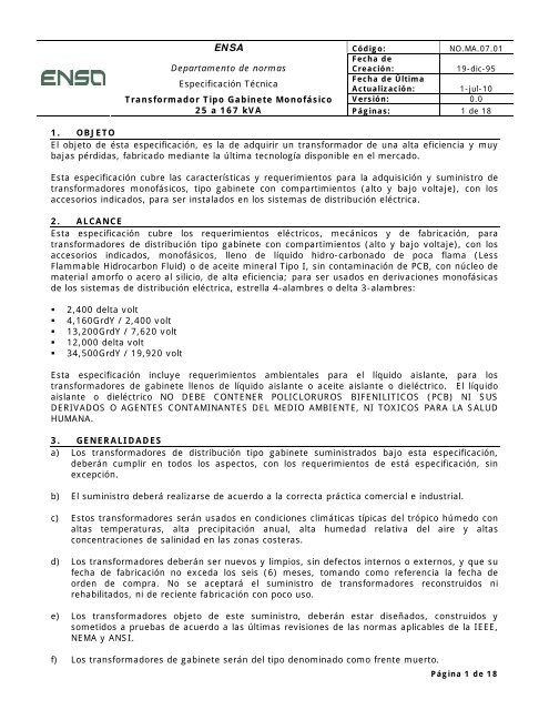 Trafo Tipo Gabinete Monofa Sico 25 A 167 Kva Ensa